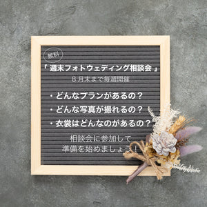 8月末まで毎週 金・土・日に「フォトウェディング相談会」を開催しています。