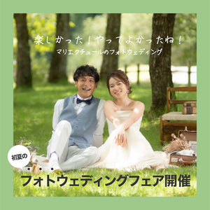 新緑がキレイな季節がまもなくやってきます。フォトウェディングをお考えの皆様には、店内でも外でも好きな場所で楽しく写真が撮れるシーズンの到来です!そこでマリエクチュールでは、「初夏のフォトウェディングフェア」を開催いたします。